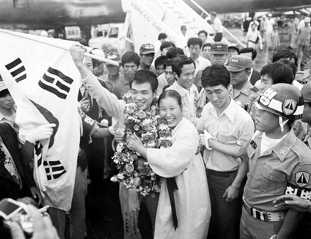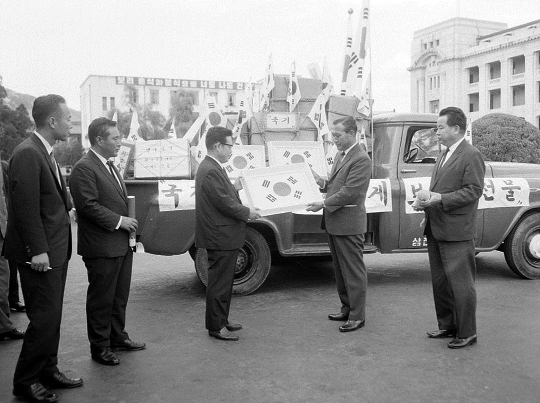 1967년 주월 한국군에 태극기를 기증하는 모습.