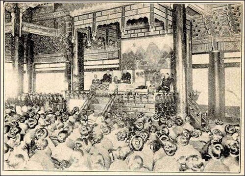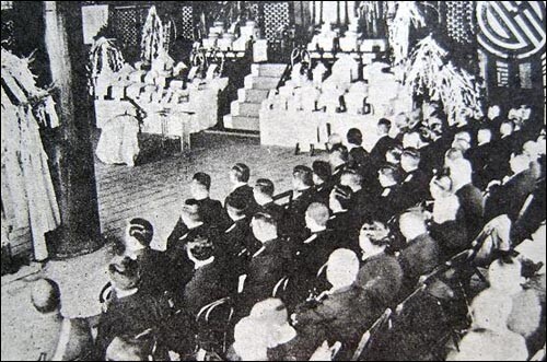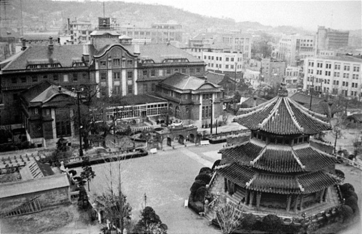 | □치욕적인 일제시대 건물들□ 1. 황제의 상징인 원구단을 파괴하고, 철도호텔(현 조선호텔) 짓다 황궁우가 제거되고, 철도호텔이 들어서 있다. 훼손 전의 황궁우와 원구단 2.조선의 법궁인 경복궁을 파괴하고, 박람회장으로 만들어 버린 일본 조선 박람회장 안내도 박람회장이 되버린 경복궁, 광화문을 위치도 서쪽에 옮겨져 있다. 경복궁을 가득 메운, 박람회용 가건물들 일제의 훼손전 경복궁 3. 경복궁 근정전에서, 전몰순사의 초혼제를 지내는 일본 4. 조선의 법궁인 경복궁에서 공진회 수상식을 진행하는 사이토총독 근정전 안의 사이토 총독 5.조선의 통감부와 통감관저 조선통감부(왜성대) 통감관저(구 일본공사관) 6.조선의 법궁인 경복궁에 일부러 건립한 조선총독부 7.용산에 건립한 총독관저 8. 경성부청(현 서울시청) 9. 남산에 건립된 신사 10.용산의 일본 조선군 사령부와 사령관 관사 일본 조선군 사령부 일본 조선군 사령부 사령관 관사 11.일제시대 용산역 12.일본인이 가득찬 명치정(현 명동) 13. 일제시대 부산역 14.일제시대 부산세관 |