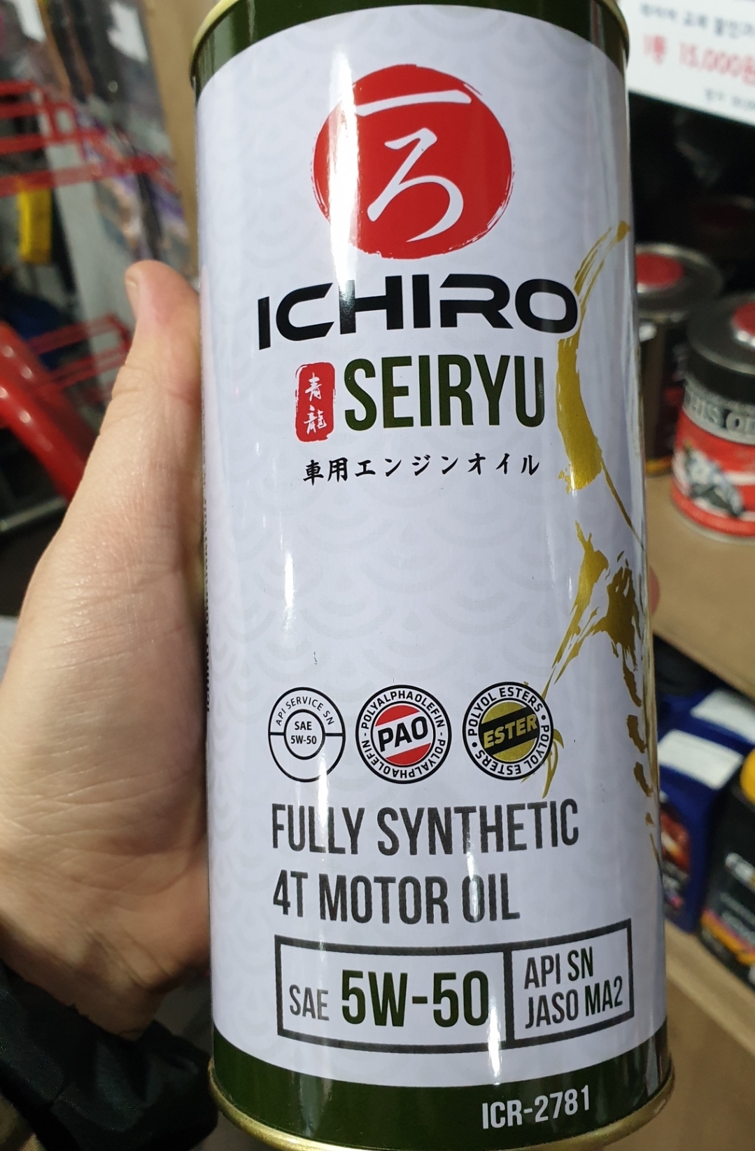 근데 첨보는 엔진오일 이치로세이류 100%합성유네요