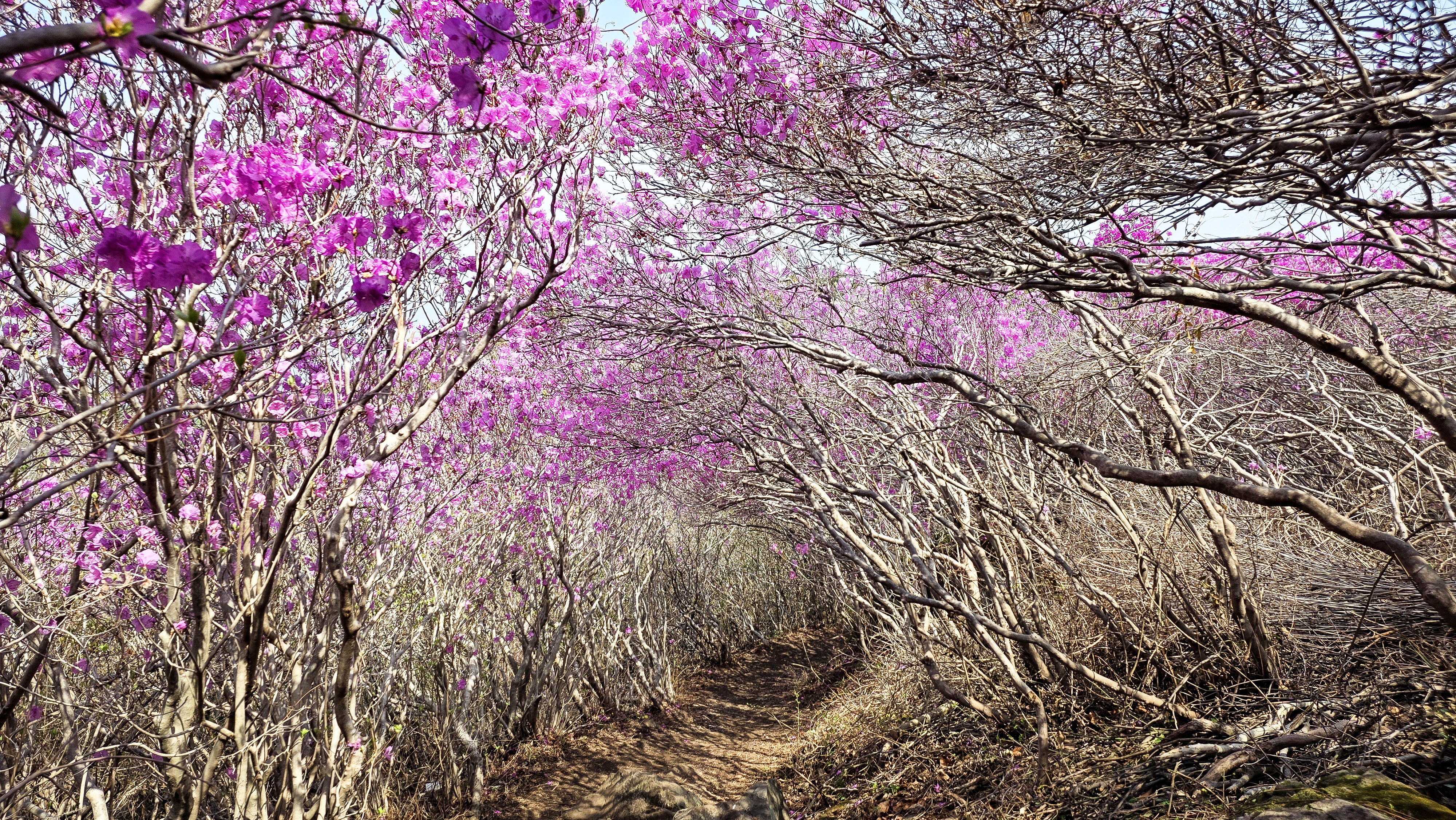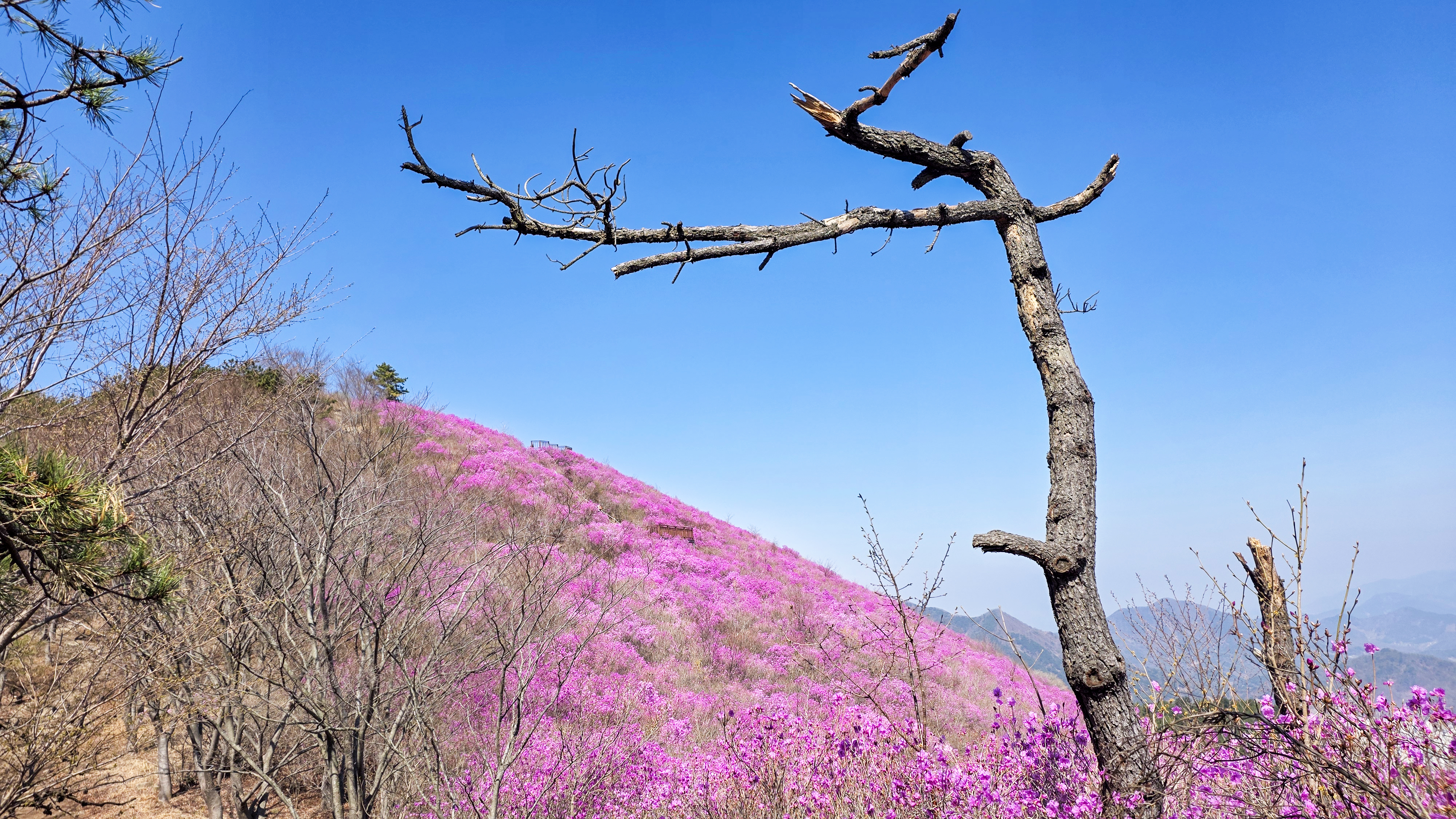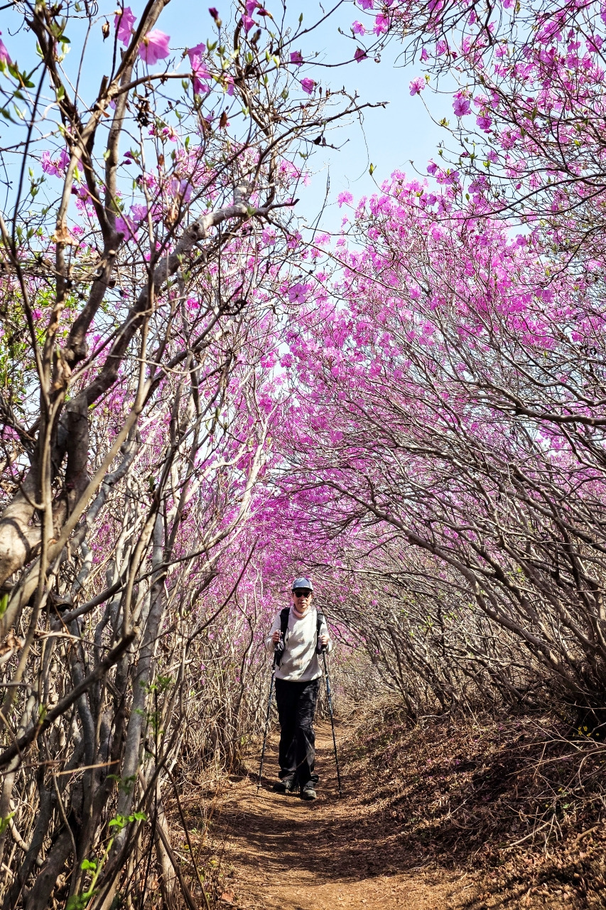 9부 능선쯤 되니 진달래 군락지가 보입니다.