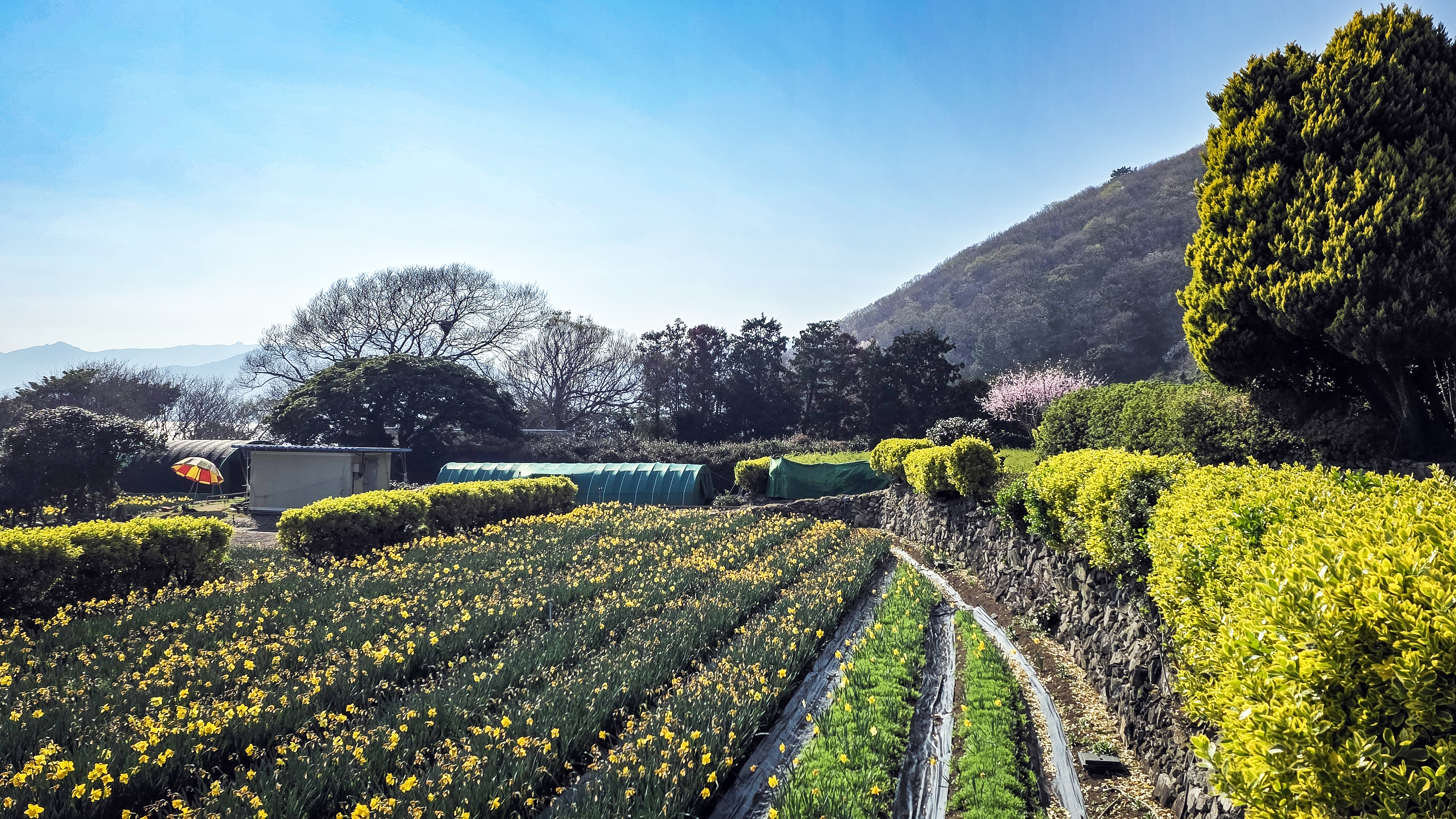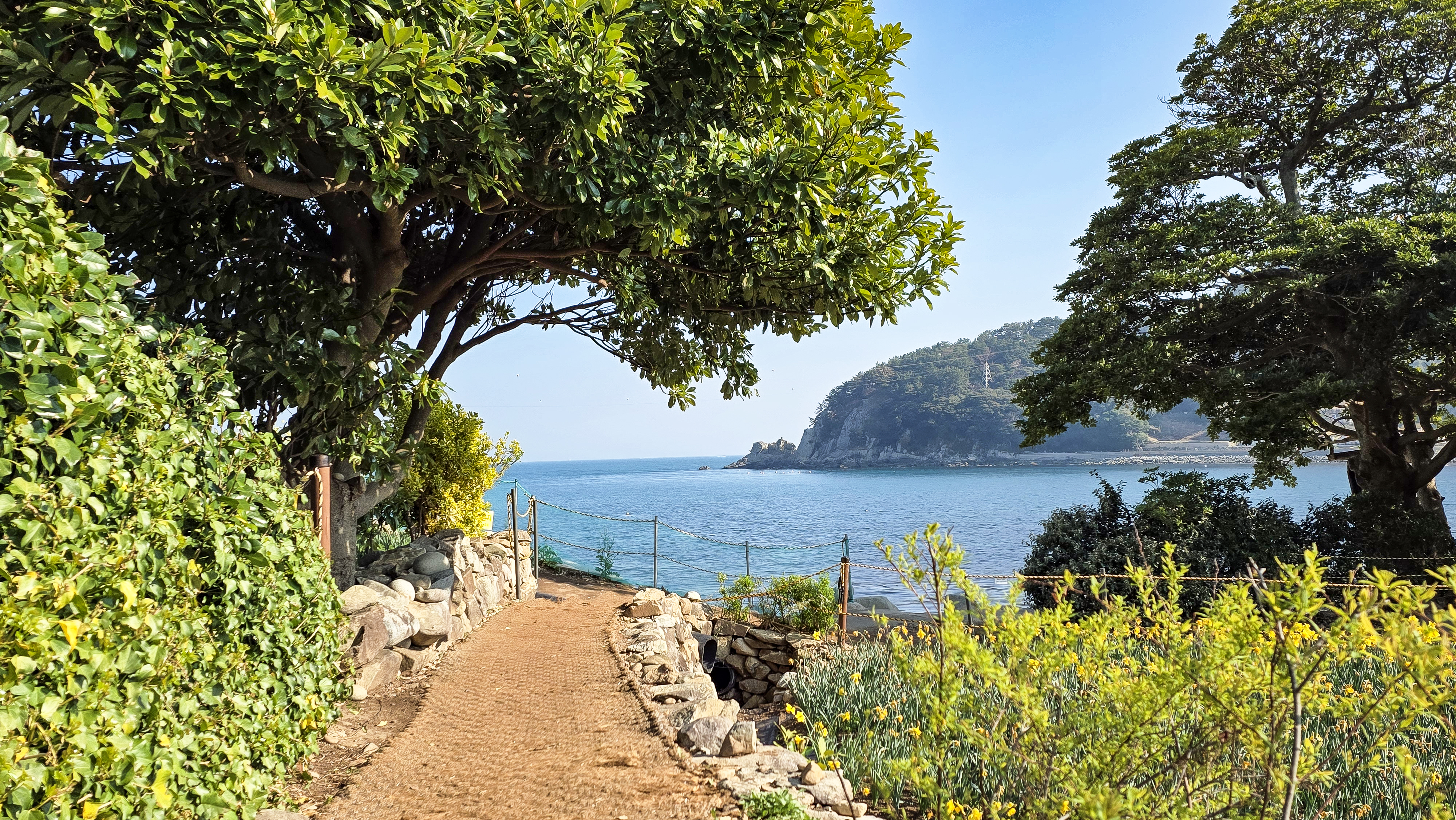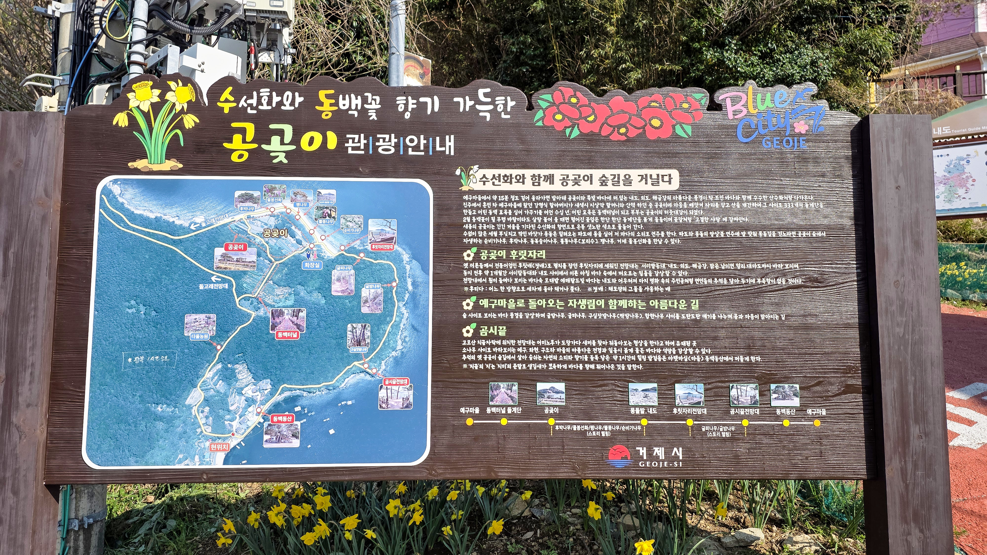 여기는 3월말에 동백꽃이 떨어져 계단이 붉게 물들고 계단끝에서 수선화 밭이 펼쳐지는게 장관임.