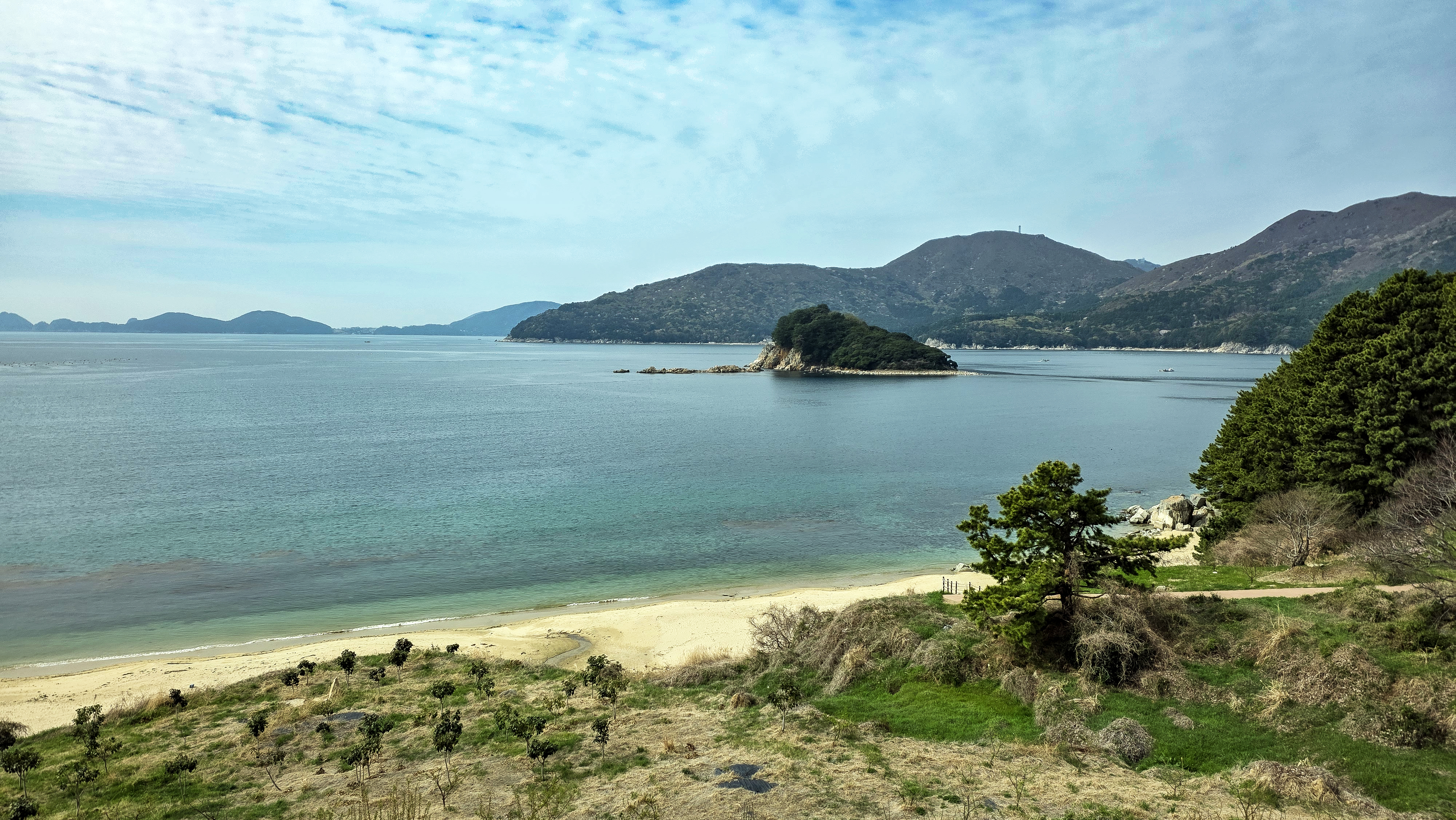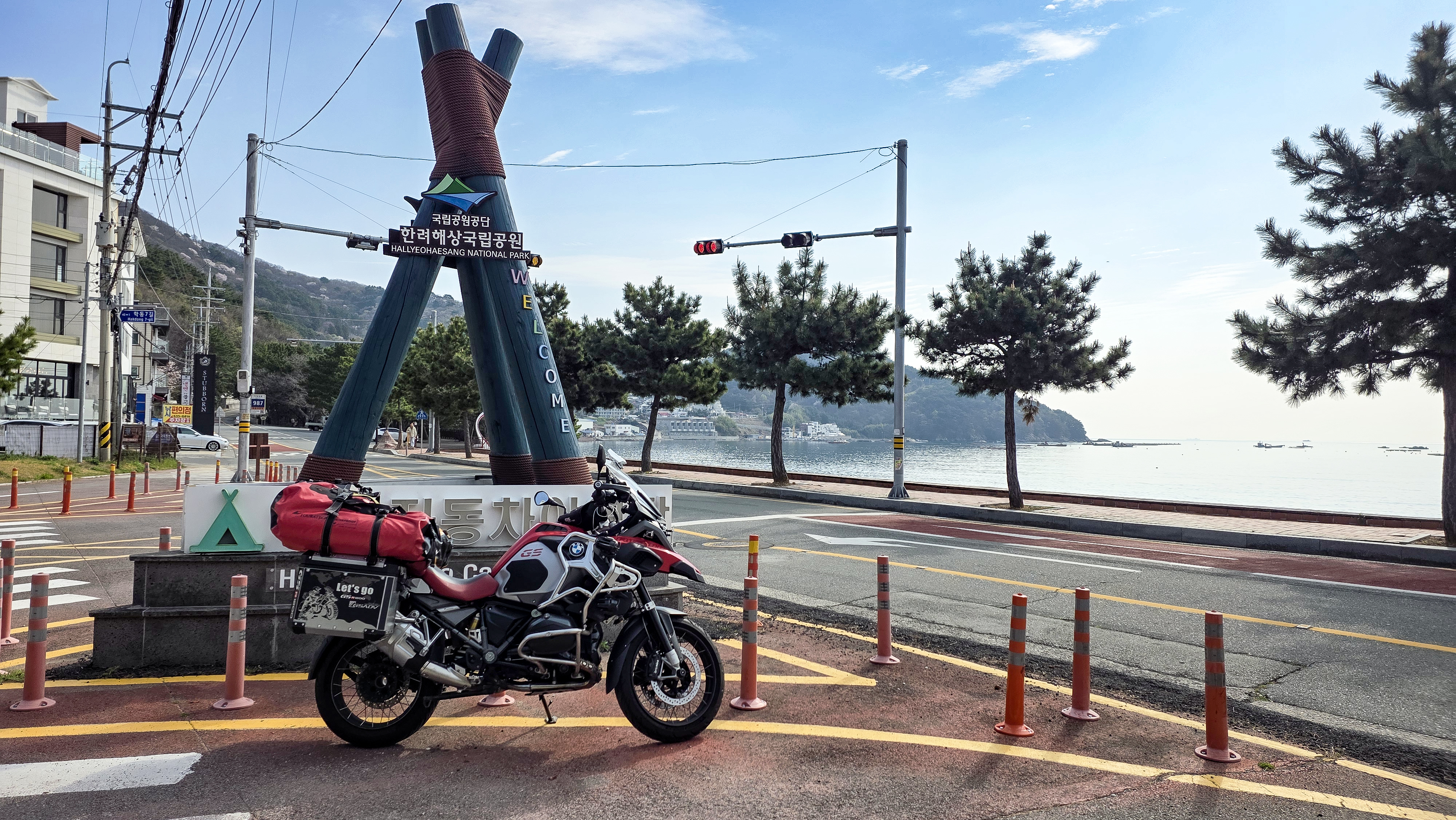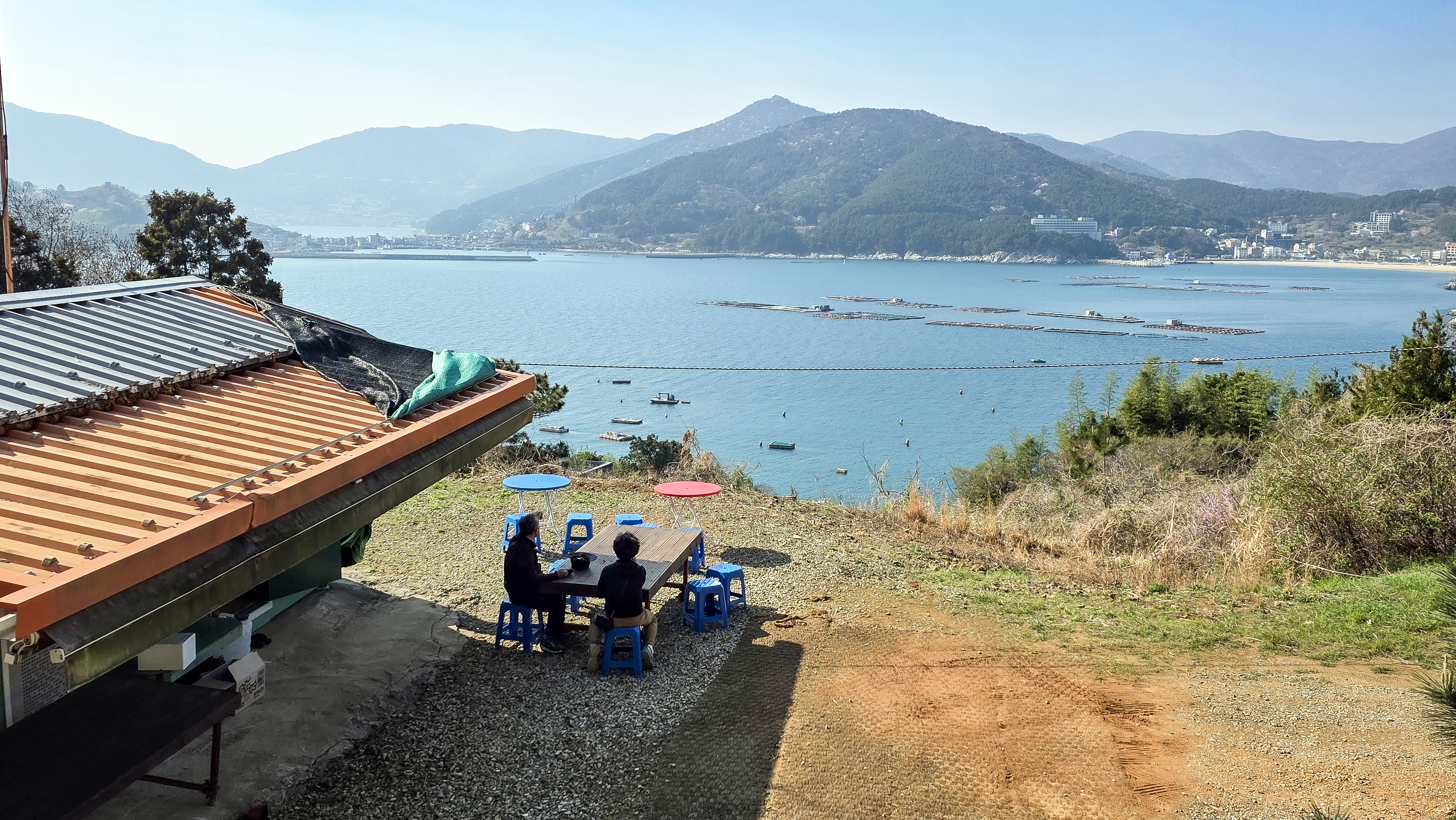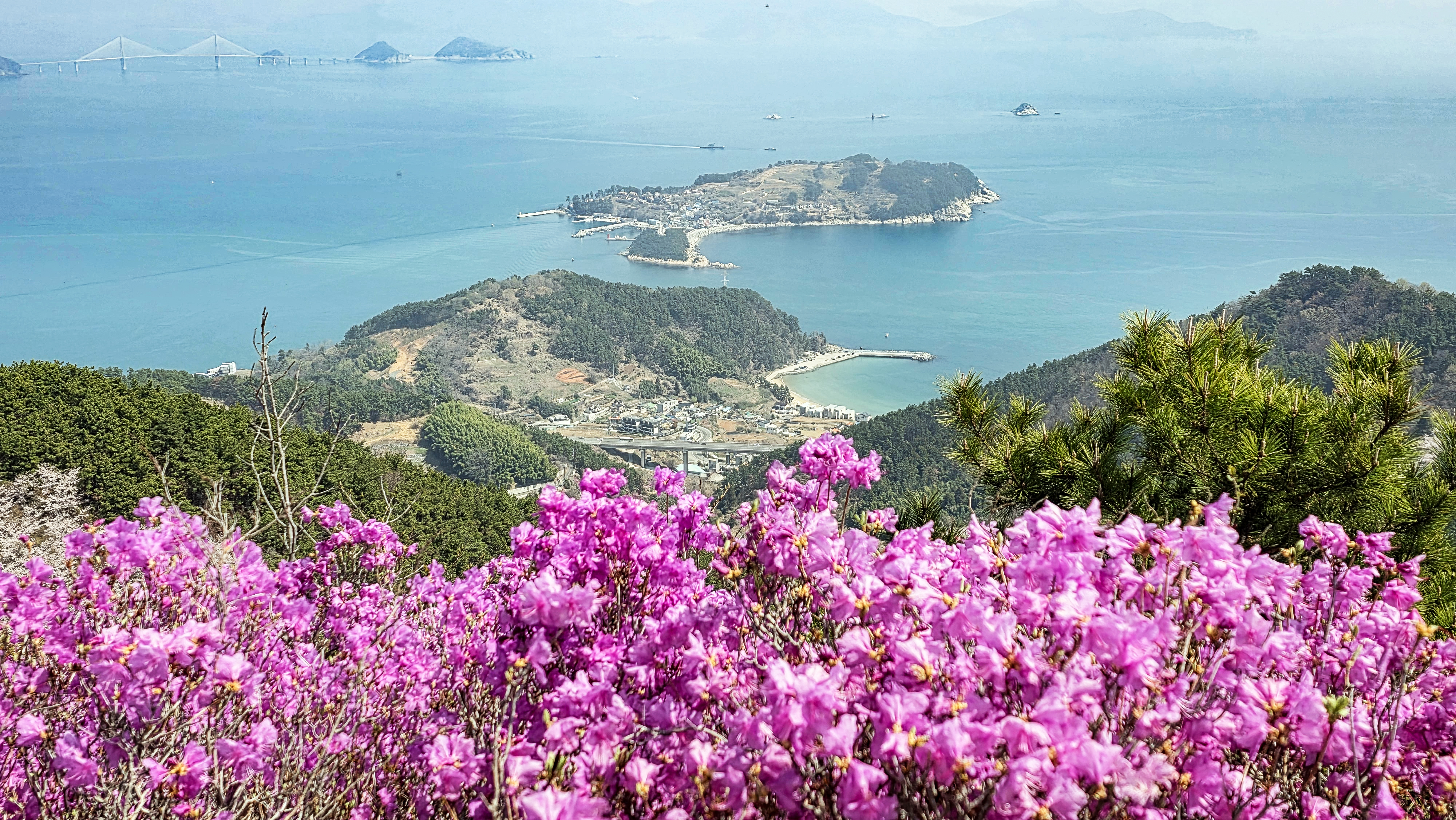 뒷편으로 거가대교가 보이입니다 다리가 보이지 않는 부분은 해저터널입니다.