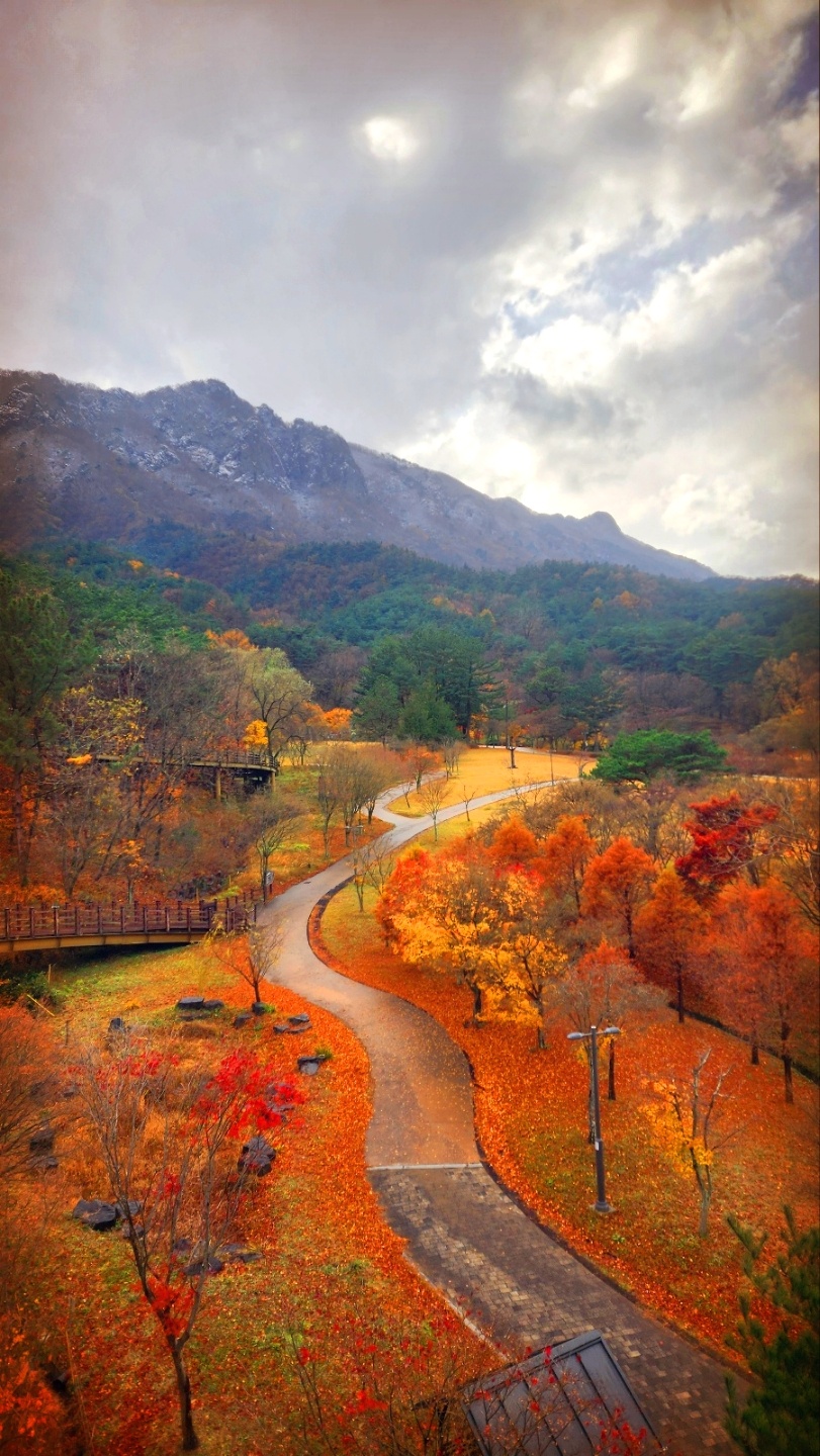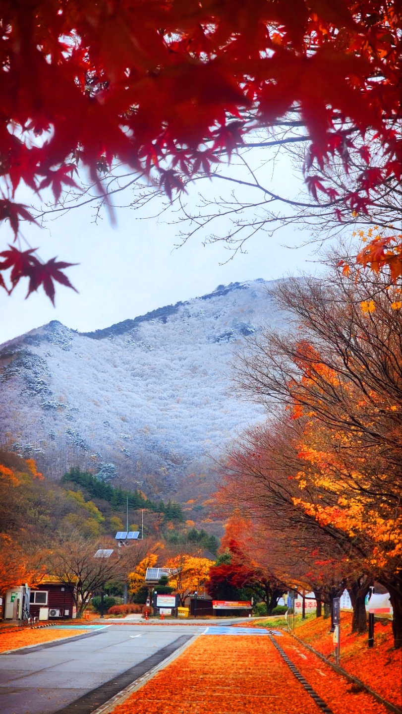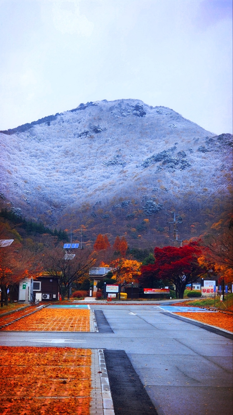 첫눈 내리는 내장산 끝물 단풍 모습들입니다