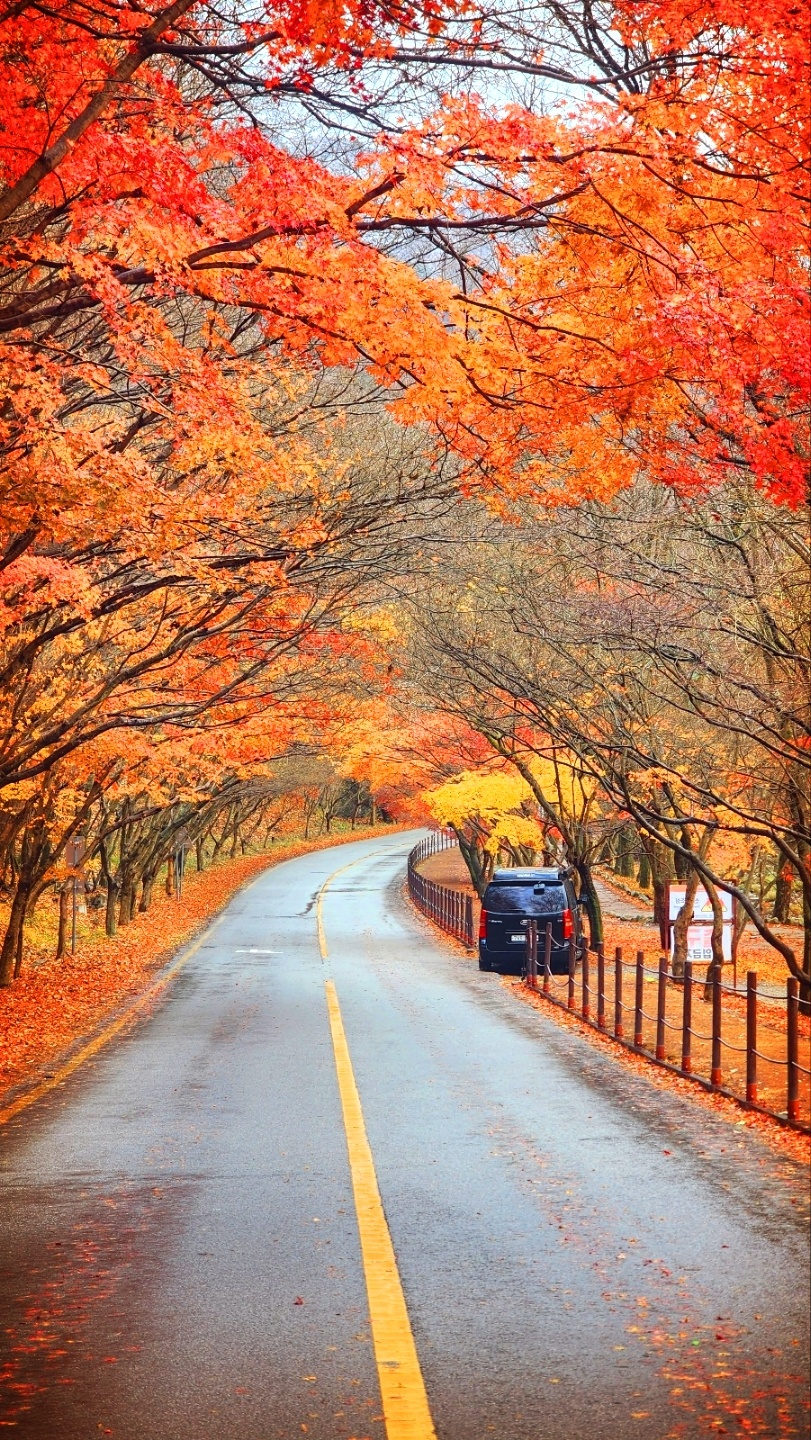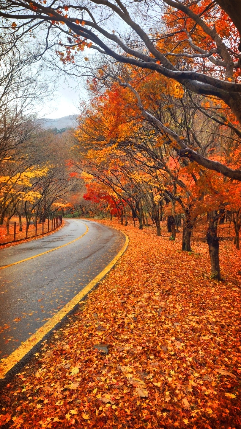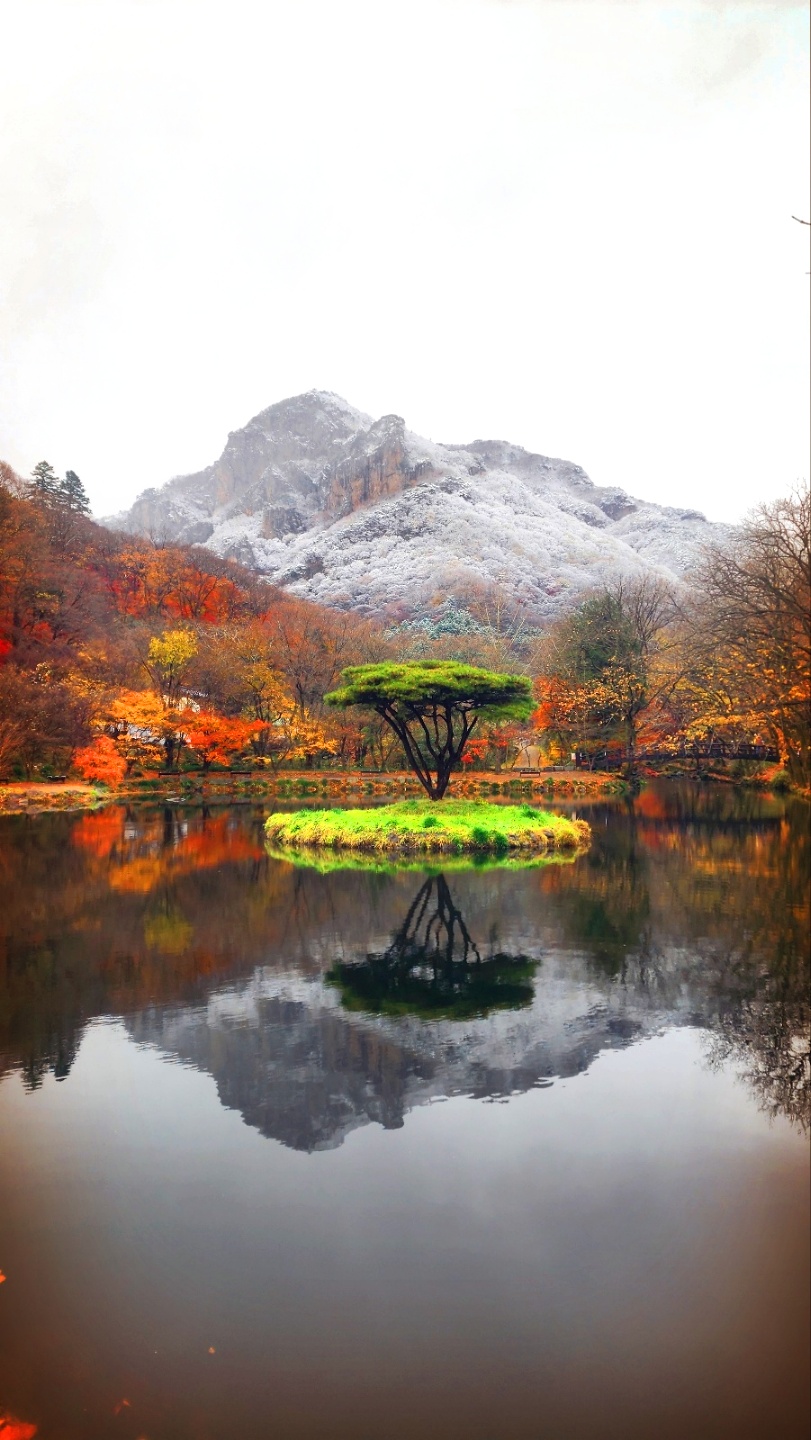 첫눈 내리는 내장산 끝물 단풍 모습들입니다