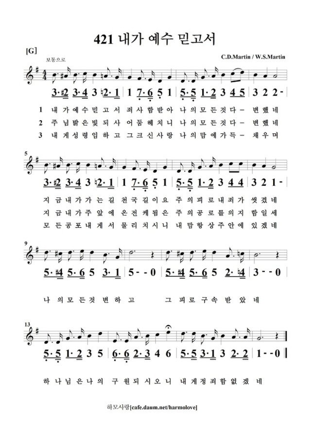 3월 찬양과제곡은 찬송가 421장(통합210장) "내가 예수 믿고서" 로 정하였습니다.