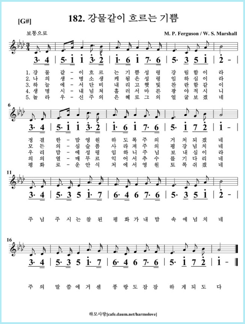 4월 찬양과제곡은 찬송가 182장(통합169장) "강물같이 흐르는 기쁨" 으로 정하였습니다.