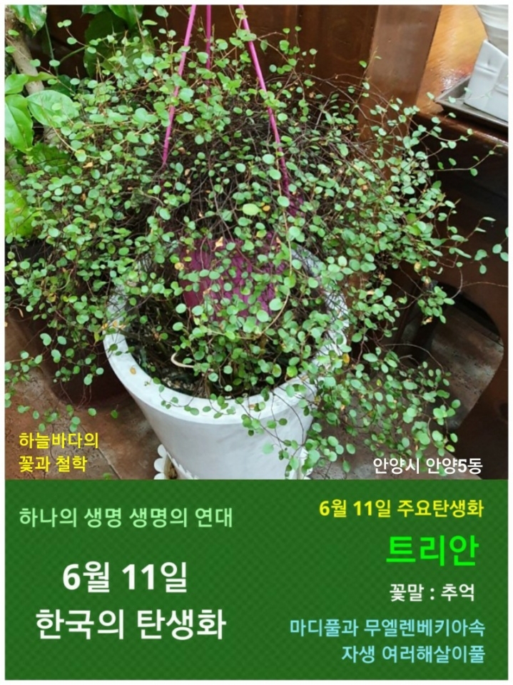 이밖에서 외산 식물로 식물원이나 온실, 실내의 화분에서 만날 수 있는 트리안도 오늘의 탄생화입니다.