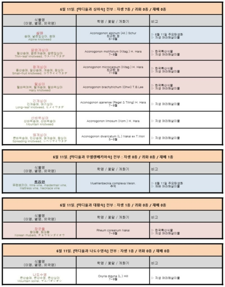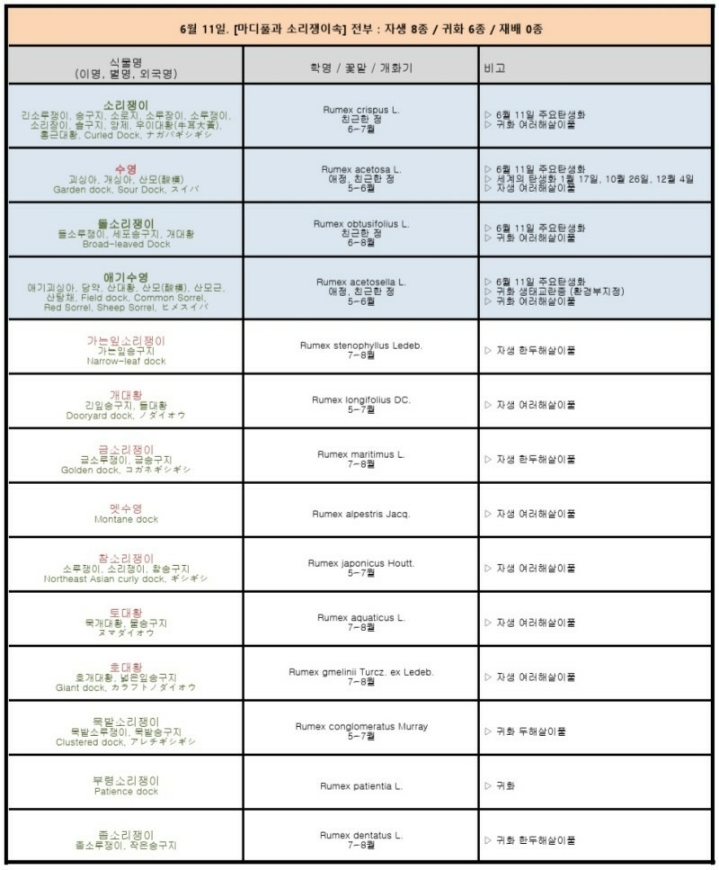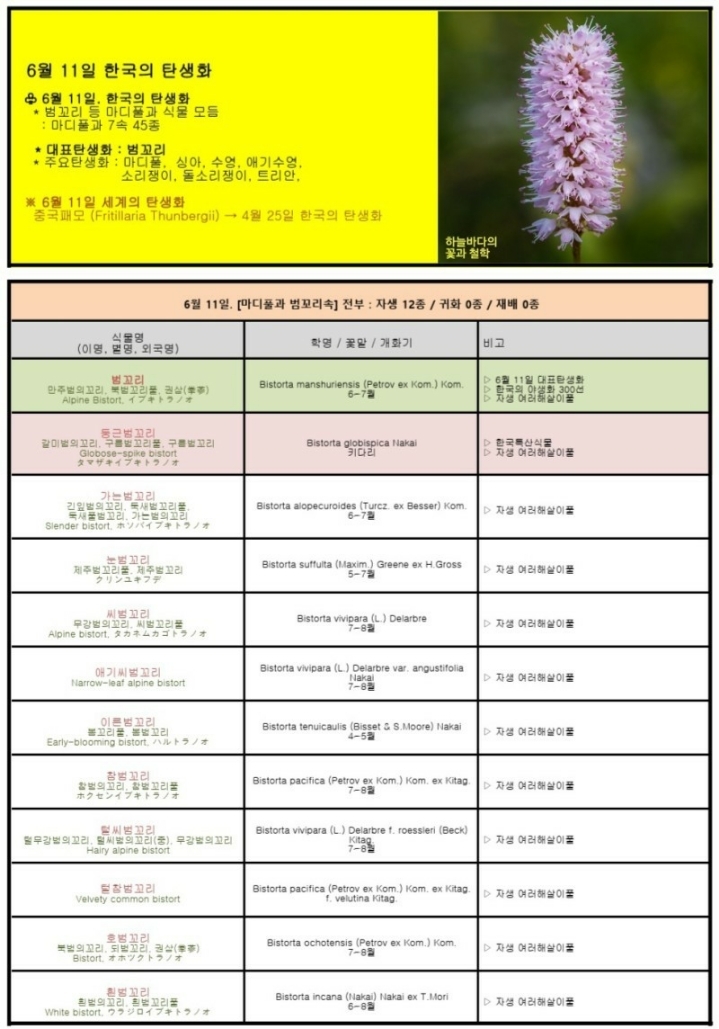 6월 11일. 한국의 탄생화 / 범꼬리, 수영, 싱아, 마디풀, 소리쟁이