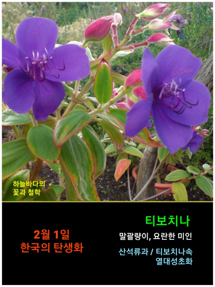 마지막으로 멕시코와 브라질이 고향인 [티보치나]는 [Glory Bush], [Princess Flower]이라는 아름다운 별명을 가진 꽃입니다. 온실에서는 한겨울에도 보라색 예쁜 꽃을 보여줍니다.