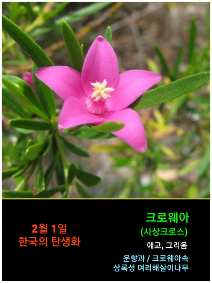 연중 개화하는 [크로웨아]는 호주가 원산으로 [사상크로스]라는 별명과 함께 남반구에서 가장 아름답게 빛나는 별 [남십자성]의 별명도 가진 멋진 별꽃입니다.