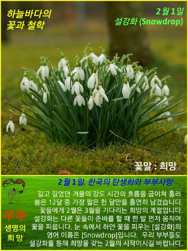2월 1일. 한국의 탄생화와 부부 사랑 / 눈 속에서 피는 꽃 설강화와 겨울 실내 개화하는 외래 식물 모듬