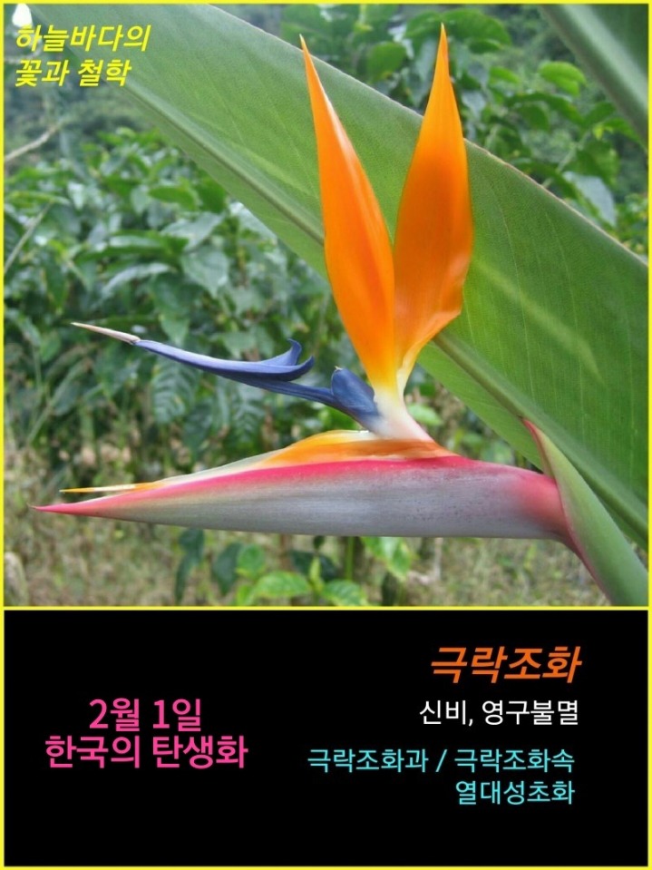 남아프리카가 고향인 [극락조화]는 꽃의 모양이 호주의 극락조를 닮아 붙여진 이름으로 독특한 꽃 모양으로 인해 [신비], [영구불멸]의 꽃말을 가졌습니다.