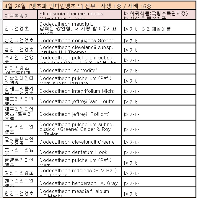 이 밖에도 인디언앵초속의 이삭봄맞이 등도 오늘의 동반 탄생화입니다.