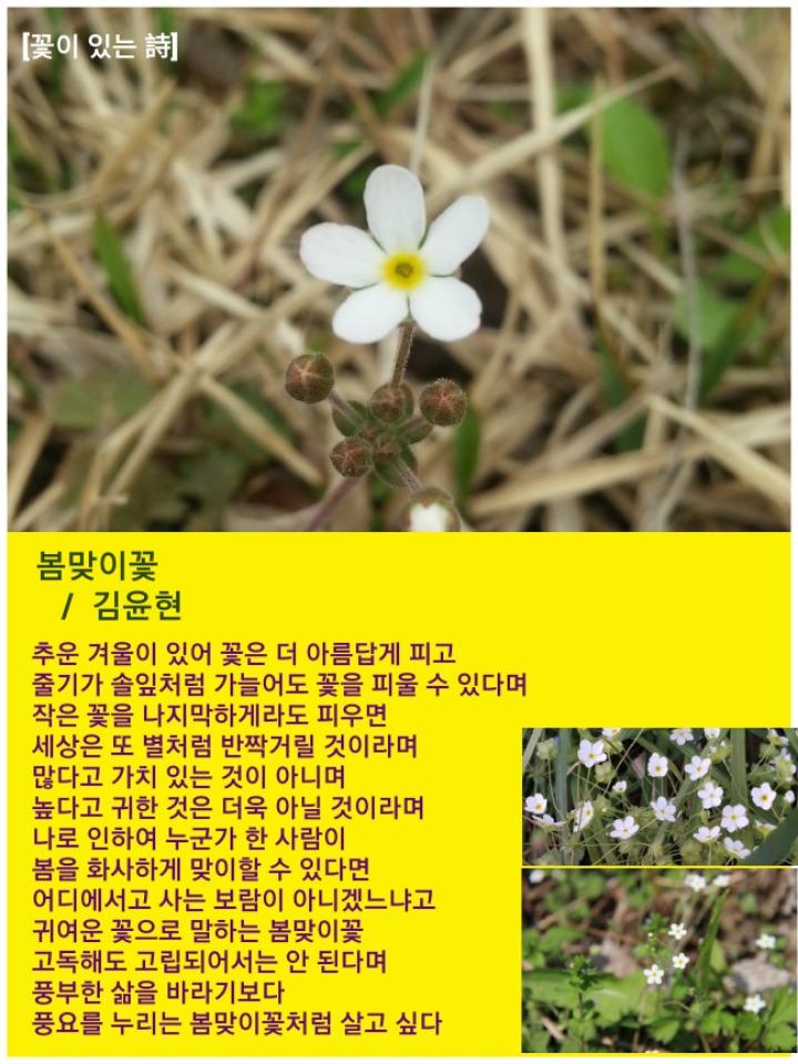 봄맞이꽃을 잘 표현한 시 한수로 오늘 하루를 시작합니다. 행복한 주일되세요.