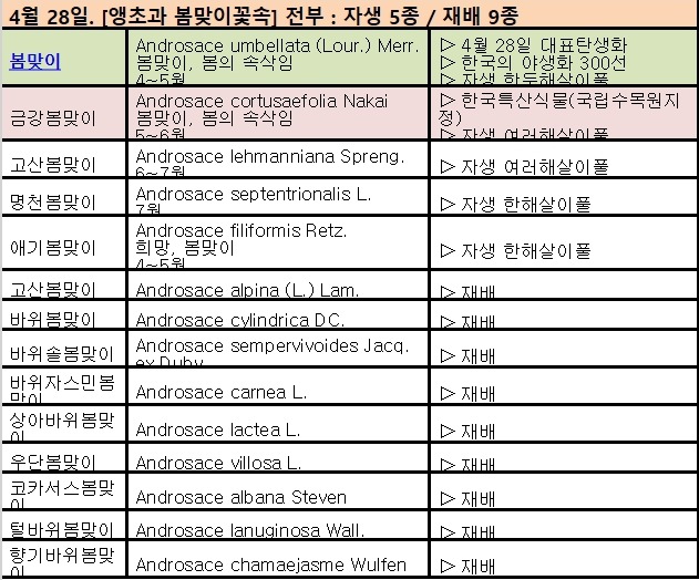 4월 28일. 한국의 탄생화와 부부 사랑 / 봄맞이, 앵초
