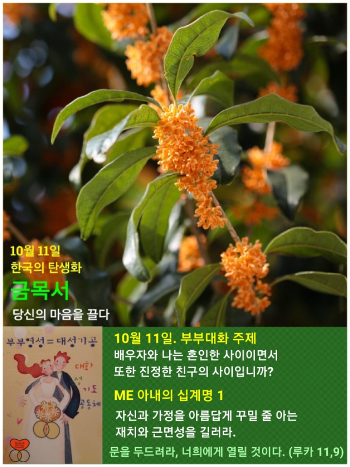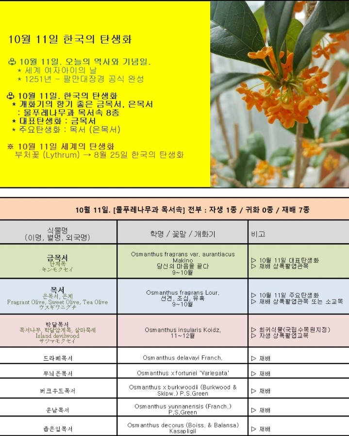 10월 11일. 한국의 탄생화와 부부사랑 /목서, 금목서, 박달목서