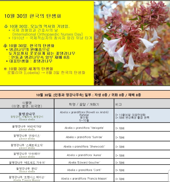 10월 30일. 한국의 탄생화와 부부사랑 / 꽃댕강나무(아벨리아)