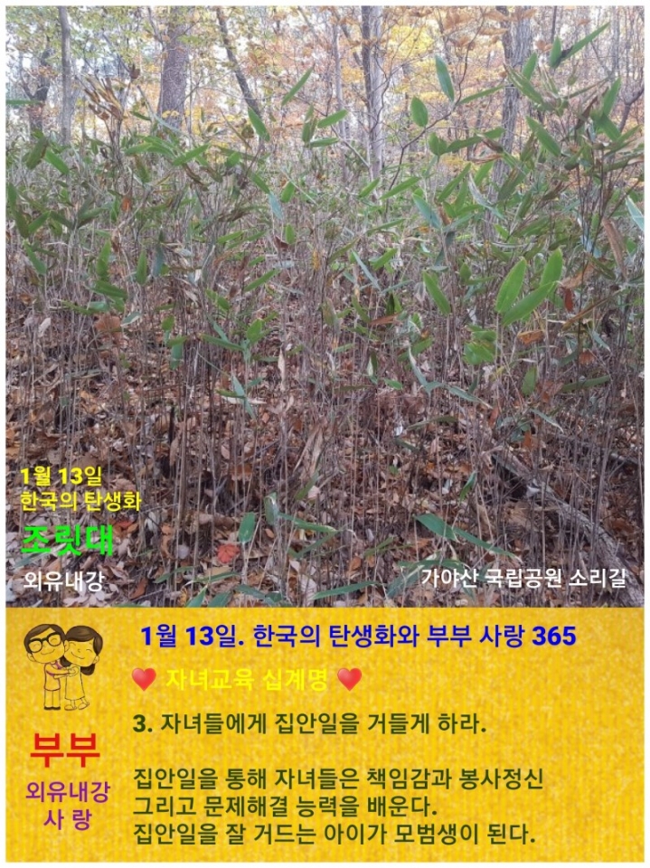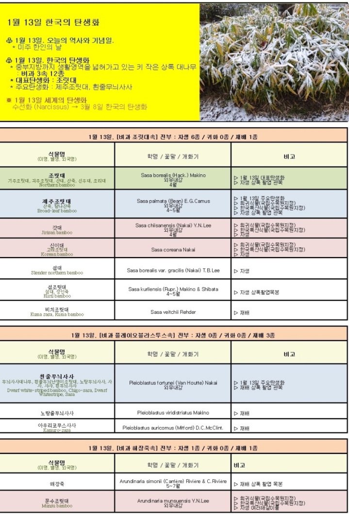 1월 13일. 한국의 탄생화와 부부 사랑 / 조릿대