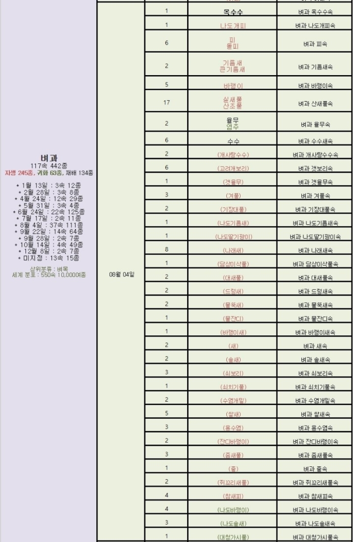 * 중부지방까지 생활영역을 넓혀가고 있는 키 작은 상록 대나무 조릿대와 유사종 : 벼과 3속 12종