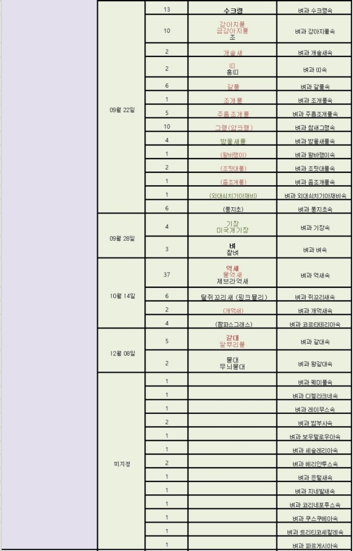 [조릿대]는 [벼과] 가문의 식물로 [조릿대속]에는 [조릿대]를 비롯해 [제주조릿대], [섬조릿대], [갓대], [섬대], [신이대] 등 6종과 재배식물 1종이 있고, [해장죽속]에는 [해장죽]과 [문수조릿대]의 2종의 대나무가 있는데 [해장죽]은 키가 6~7m까지 자라지만 [문수조릿대]가 조릿대와 비슷해 오늘의 동반탄생화로 정했습니다.