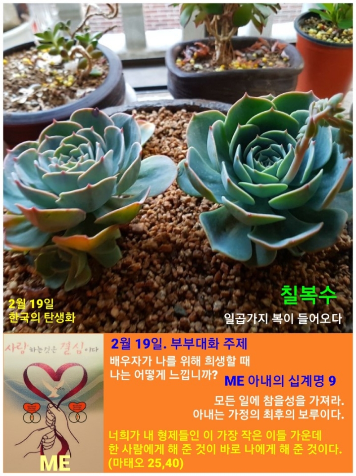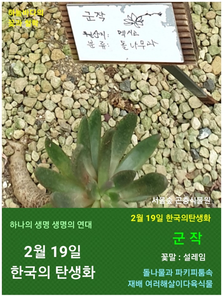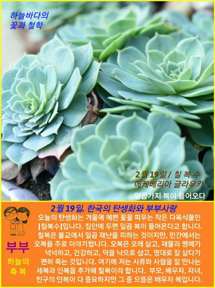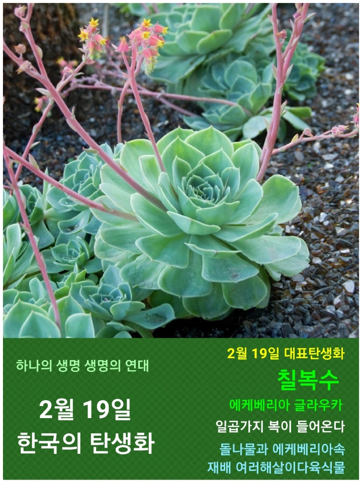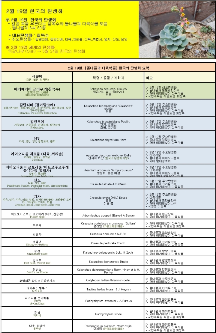 2월 19일. 한국의 탄생화와 부부 사랑 / 칠복수와 돌나물과의 다육 식물들