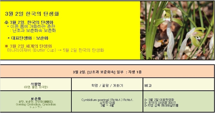 3월 2일. 한국의 탄생화와 부부 사랑 / 보춘화 (춘란)
