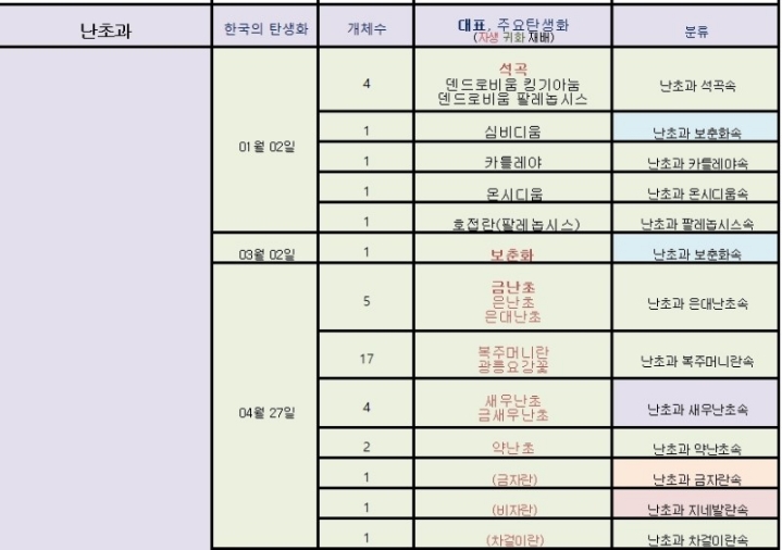 * 이른 봄에 개화하는 춘란 : 난초과 보춘화속 보춘화