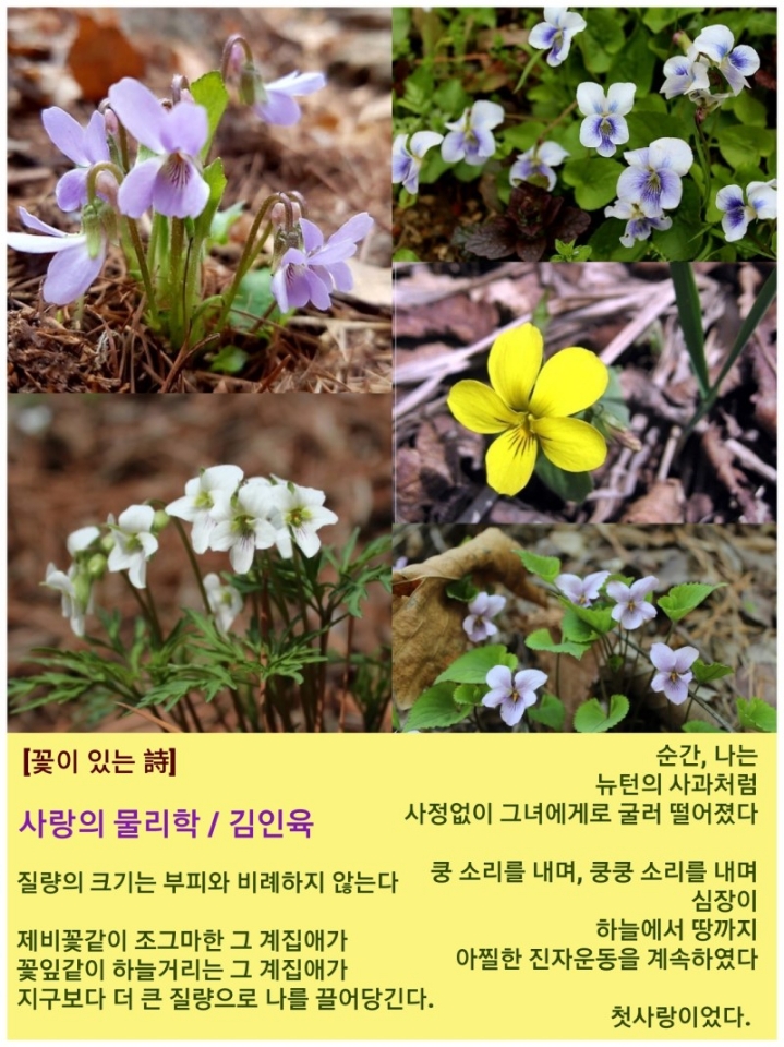 [제비꽃]의 대표적인 꽃말은 [순진무구한 사랑]입니다. 제비꽃으로 꽃반지를 만들어 사랑하는 사람에게 주었다하여 [반지꽃]이란 별명도 있는만큼, 우리 부부님들도 제비꽃과 같이 순진무구한 사랑의 마음으로 배우자와 협력하는 하루였으면 좋겠습니다. 오늘도 제비꽃들 사진과 멋진 시를 감상하면서 행복한 하루되세요.