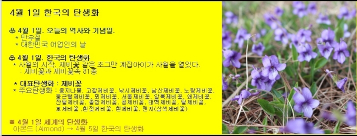 4월 1일. 한국의 탄생화와 부부사랑 / 제비꽃