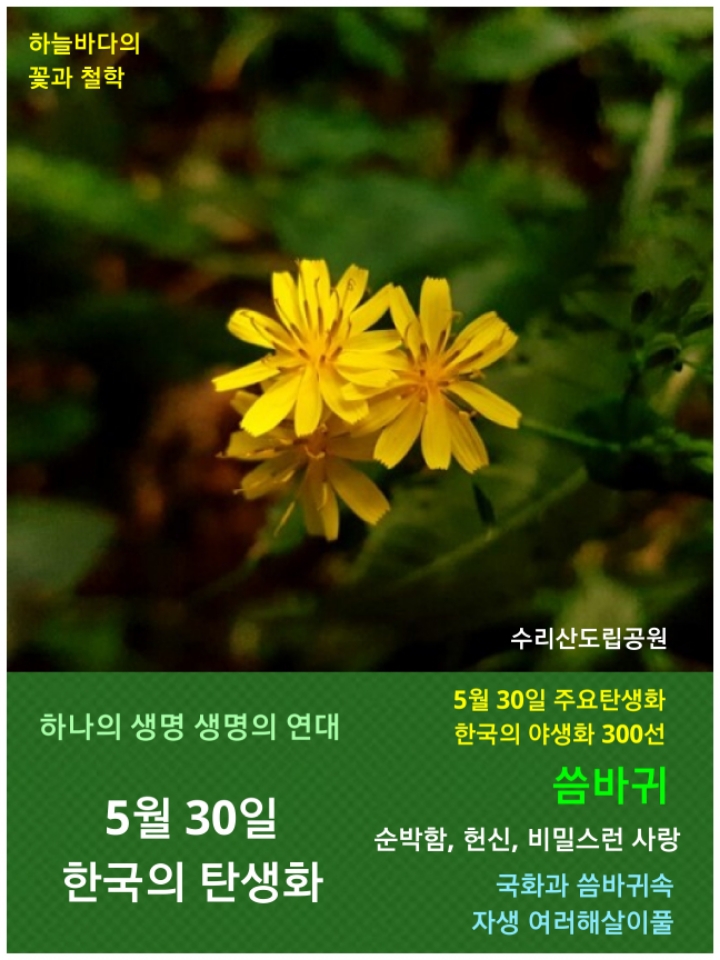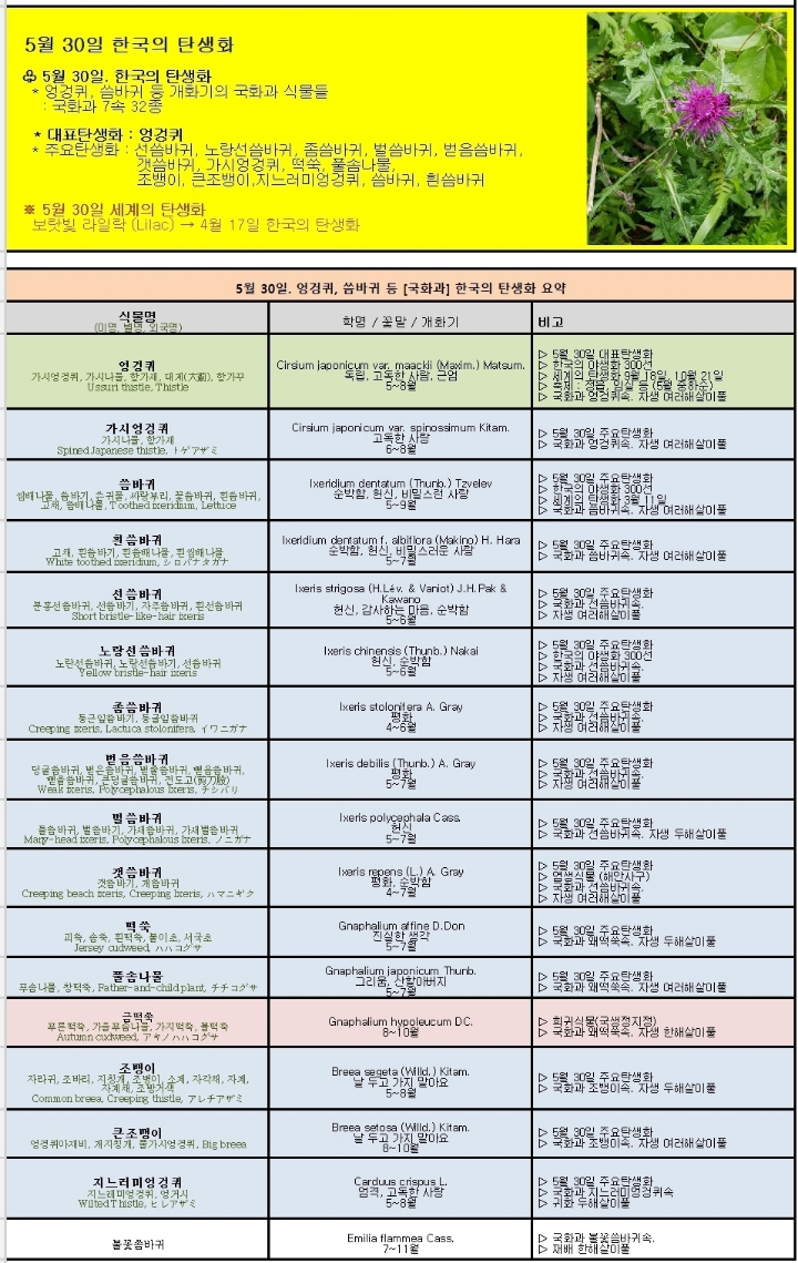 5월 30일. 한국의 탄생화와 부부 사랑 / 엉겅퀴와 씀바귀 등 개화기의 국화과 식물