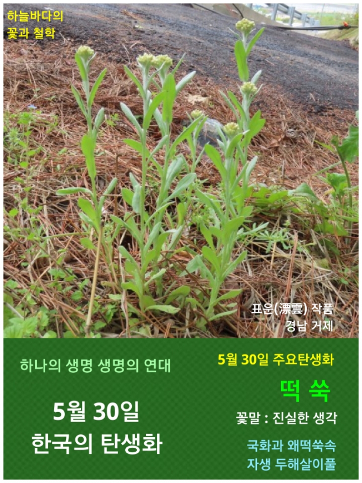 이밖에도 왜떡숙속의 떡쑥과 풀솜나물, 조뱅이속의 조뱅이와 큰조뱅이도 오늘의 동반탄생화입니다.