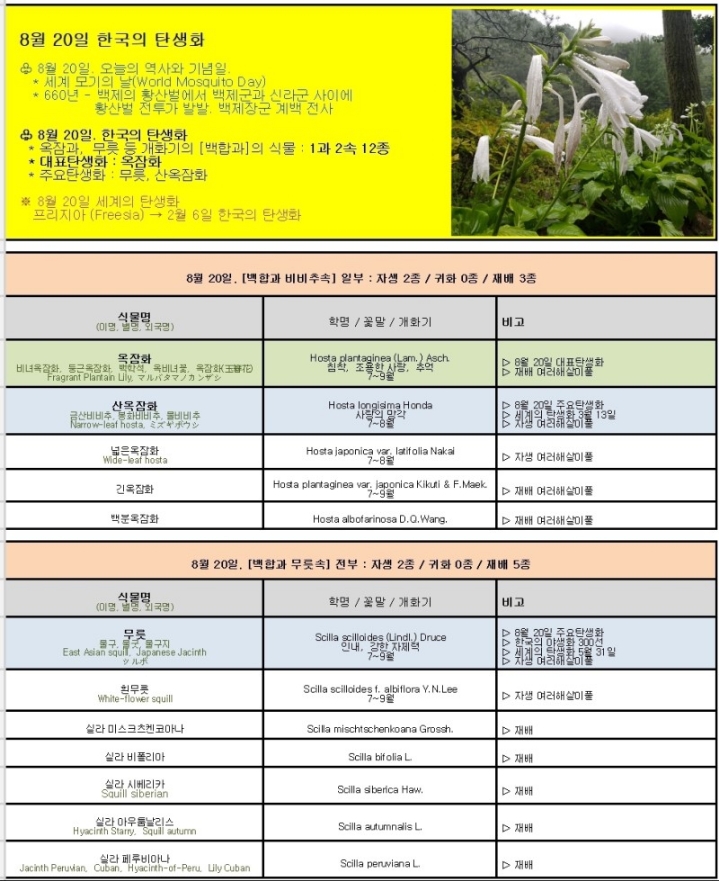 8월 20일. 한국의 탄생화와 부부 사랑 / 옥잠화, 무릇