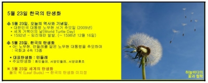 5월 23일 노무현대통령 추모일. 한국의 탄생화 / 민들레