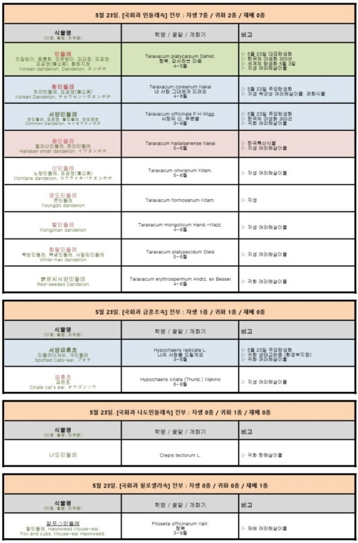 이밖에도 알프스민들레 등 민들레의 유사종들이 우리나라에 유입되고 있습니다.