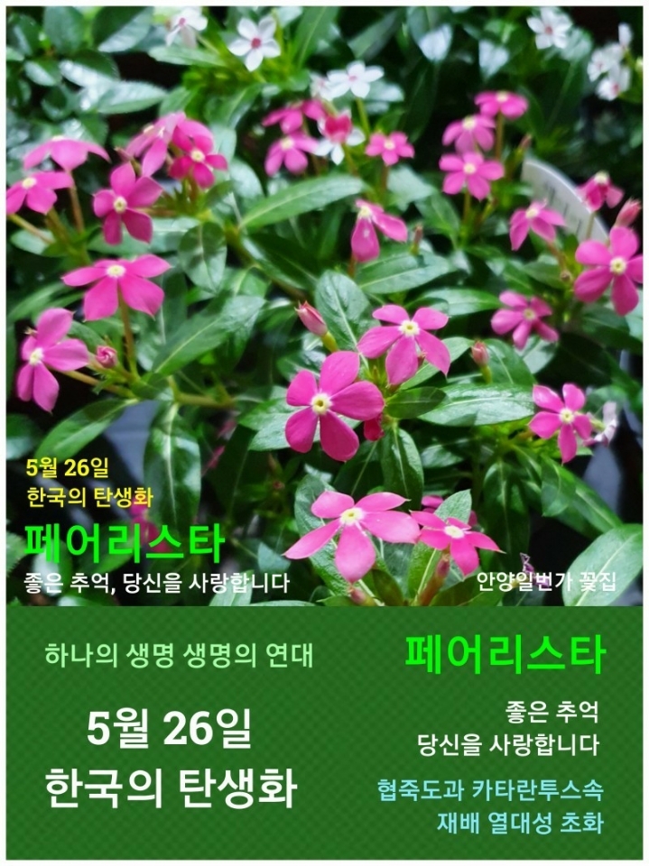 유럽이 고향이고 사사사철 상록의 푸른 잎을 가진 [빈카]도 온실에서 만날 수 있고, 요즘 한창 동네 꽃집에서 주인을 기다리는 [페어리스타]도 꽃을 활짝 피워 지나는 사람들의 발길을 사로잡고 있습니다.