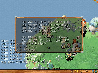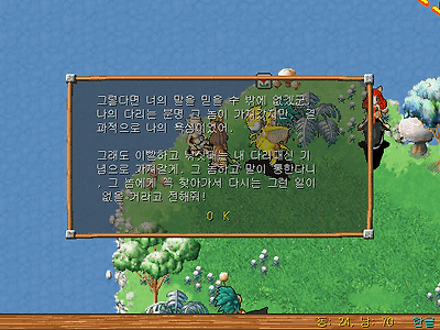 3. 마론의 도끼를 가지고 쿠키마을 남쪽으로 이동하여, 플라더리스 나무를 잡아 플라더리스 가지를 획득한 후, 슈퍼 씨보스와 플라더리스 나무를 가지고 아론에게 돌아간다.