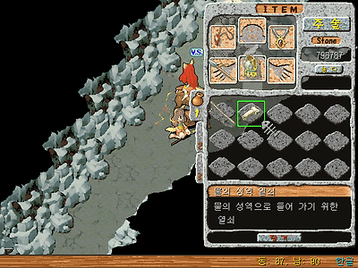 5. 백경 영감과 대화하여 저주받은 낚시대를 건네주고 납작한 돌칼을 받아 물의 동굴(71, 592)로 이동한다.