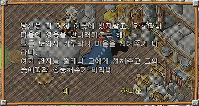4. 다시 카루타나 마을로 돌아와 촌장집의 정령과 대화하여, 영웅의 편지를 받습니다.