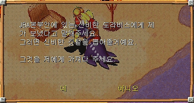 7. 다시 동 177, 남 744에 있는 영웅과 대화하여 깃털을 건네주고 도라비스의 정표를 받습니다. 도라비스의 정표는 땅에 떨어뜨리면 소멸하며, 소멸한 아이템은 영웅과 대화하여 다시 받을 수 있습니다.