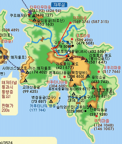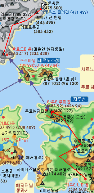 이중 쟈쟈마을을 거쳐 쟈쟈마을에 세이브한 뒤 다시 카루타나행 버스를 타서 동 479 부근에서 하차한 뒤 동 479, 남 509에 위치한 툰가에게 이동, 벽을 타고 아랫쪽으로 나아가시는것이 좋습니다.