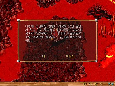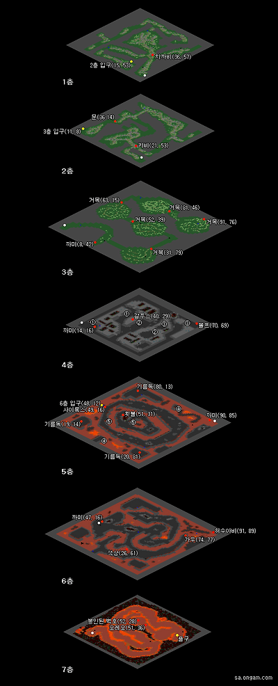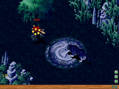 | 퀘스트 조건: 레벨 100 이상, 성인식 퀘스트 클리어, 하이하모 진입 퀘스트 클리어, 하이하모 신전 진입 퀘스트 클리어, 영웅 퀘스트 클리어, 오랑이 퀘스트 클리어. 이상한 조개 필수 추천 조건: 레벨 110 이상 으로 파티(그룹) 5명 이상. 이벤트 보상: 블랙앤화이트(공+8 방+8 순+8 매력+10 회피율+3 빛의 정령(1회, 기력 15) 백호 탑승 가능), 경험치 3만, 환생스탯 보너스(환생보너스란 환생이벤트 클리어로 1레벨로 환생되었을 때의 주어지는 초기포인트에 기존스탯 이외의 추가보너스의 여부) 선택 보상: 기도의 하프(오로라의 정령, 매력 +6) - 퀘스트 공략 중 '선택사항' 참고 1. 하이하모 정령의 마을의 바람 정령의 집으로 들어가 신명한 점쟁이(15, 11)와 대화한 뒤, 사이너스섬 자연동굴(382, 663)로 이동한다. 2. 자연동굴 3층의 출입제한구역(44, 66)과 대화하여 이동한 뒤 바로 뒤의 입구(45, 69)로 들어가 자연동굴 지하로 이동한다. 그 후 지하동굴 3층의 바카라(36, 11)과 전투하여 수정구슬을 획득한다. Tip: 지하동글 2층 입구: 56, 60 // 지하동굴 3층 입구: 35, 41 Tip2: 바카라 Lv 100, 아토라지 Lv 100(x4) 자연동굴의 지도 3. 정령마을로 돌아와 신명한 점쟁이와 대화하여 수정구슬을 건네주고 봉인 항아리를 받은 뒤, 호피도로 이동한다. 그 후 호피도의 석상(130, 157)과 대화하여 호각의 동굴 지하 1층으로 진입한다. Tip: 호각의 동굴 지하 1층은 몽환의 동굴(낮) 처럼, 새벽시간과 해가 떠 있을때만 진입이 가능합니다. 밤에는 진입 불가. 4. 호각의 동굴 지하 1층의 치까비(36, 57)와 대화한 후 2층으로 이동한다. 그 후 2층의 키비(21, 53)와 대화해 점토를 받은 뒤 문(36 14)과 대화하여 열쇠구멍이 찍힌 점토를 획득한다. Tip: 2층 입구 - 15, 53 호각의 동굴 지도 5. 열쇠구멍이 찍힌 점토를 획득한 뒤, 호피도 선착장으로 돌아와 열쇠장인(180, 137)과 대화해 열쇠구멍이 찍힌 점토와 500Stone을 건네주고 열쇠 세공 영수증을 받는다. 그 후 한번 더 대화하여 열쇠 세공 영수증을 건네주고 열쇠를 획득한다. 6. 다시 호각의 동굴 지하 2층으로 이동하여 문과 대화해 열쇠를 건네주고 이동해 3층으로 올라간다. 그 후 3층의 까미(8, 42)와 대화한 후, 5개의 거목을 모두 제거한다. 마지막 거목을 쓰러뜨리면 4층으로 자동 이동할 수 있다. Tip: 3층 입구 - 11, 8 Tip2: 등장적 - 플라더리스 나무 Lv1(플라더리스 나무는 공격을 합니다) Tip3: 3층 맵은 미로 같아 보이지만 가장자리쪽으로 돌아가면 쉽게 이동 가능합니다. 거목(첫번째)좌표: 31, 79 // 거목(두번째)좌표: 52, 39 // 거목(세번째)좌표: 63, 15 // 거목(네번째)좌표: 81, 46 // 거목(마지막 다섯번째)좌표: 91, 76 7. 4층의 까미(14, 16)와 대화한 후 볼프(70, 69)와 대화하여 전투한다. 그 후 5층으로 이동한다. Tip: 4층에는 용암트랩이 있습니다. 이동시에 무작위로 발동되며, 한번에 50의 내구력이 닳게됩니다. 다만, 트랩으로 내구력이 깎이더라도 1 이하로 깎이지는 않으므로(죽지 않음), 전투만 조심한다면 트랩을 무시하고 이동하실 수 있습니다. Tip2: 볼프까지 이동하는데는 몇개의 구멍을 거쳐가야 합니다. 15, 13좌표의 구멍으로 이동한 뒤, 43, 37좌표의 구멍으로 이동합니다. 그 후 52, 53좌표의 구멍으로 들어가면 볼프 앞으로 이동 됩니다. Tip3: 등장 적 - 볼프 Lv 102, 볼케 Lv 100(x4) 선택사항 - 4층에서 갈푸스(40, 29. 갈푸스 104Lv x5)와 전투하여 이블티거를 도와주면, 기도의 하프(오로라의 정령, 매력 +6)를 받을 수 있습니다. 8. 5층으로 이동하여 까미(90, 85)와 대화한 후 5층의 3개의 기름독과 대화하여 구멍에 기름을 붓고 횟불을 구해 구멍에 던져 넣고 사이록스(49, 16)와 전투한다. 그 후 6층으로 이동한다. Tip: 6층 입구 - 48, 12 Tip2: 기름독의 위치(구멍은 기름독 옆에 있습니다) - (80, 13), (19, 14), (20, 81) 횟불의 위치 - (51, 31), 횟불의 남쪽, 북쪽(지도상)에서 대화해야 획득 가능. 여러개 소지 가능. Tip3: 사이록스가 있는 곳은 86, 58좌표의 구멍으로 들어가면 이동 가능하며, 횟불이 있는 곳은 사이록스 아래쪽 계단으로 내려와 시계방향으로 돌아 35, 33좌표의 구멍으로 들어간 후 이동해야 합니다. Tip4: 등장 적 - 사이록스 Lv 105, 가이록스 Lv 102(x4) 9. 6층의 까미(47, 16)와 대화한 뒤, 가우(74, 77)를 쓰러뜨려 붉은 보석을 획득한 다. 그리고 이것을 석상(26, 61) 에게 건네주고 검정색 조각을 받아 허수아비(91, 89)와 대화하여 검정색 조각을 건네주고 7층으로 이동한다. Tip: 등장 적 - 가우 Lv 108, 갈푸스 Lv 105(x4) 10. 7층으로 이동한 뒤 오레오(51, 36)와 대화하여 전투한다. 전투에서 승리한 뒤 봉인된 백호(52, 28) 앞으로 이동하여 봉인 항아리를 건네주고, 백호의 봉인 항아리를 받는다. Tip: 등장 적 - 오레오 Lv 110, 가우 Lv 108, 볼프 Lv 108(x3), 사이록스 Lv 108(x3), 가이록스 Lv 108(x2) 오레오는 오단치기를 사용합니다. Tip2: 4층의 선택사항을 진행해 이블티거를 도와준 후라면, 이때 기도의 하프를 함께 받을 수 있습니다. 11. 출구로 나와 1층으로 다시 이동하여 치까비와 대화한 후, 치까비 Lv 1을 획득하고 정령마을로 돌아와 신명한 점쟁이와 대화해 치까비을 건네주고 경험치 3만을 획득한다. 12. 백호의 봉인 항아리를 가지고 헤메라신전으로 이동하여, 헤메라 여신과 대화하
