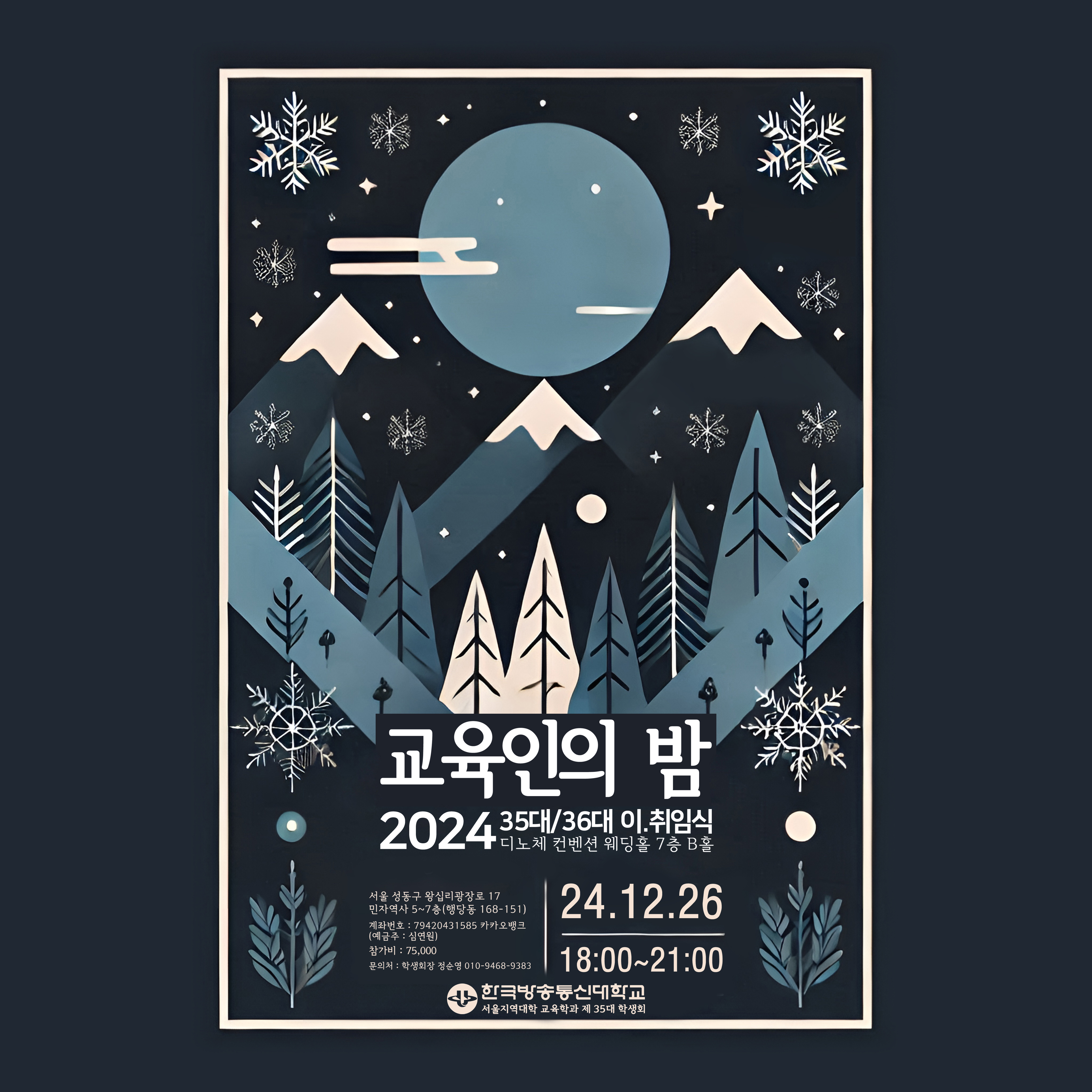2024 교육인의 밤 초대 작성자이신숙(교육4)|작성시간24.12.14|조회수37 목록 댓글 0 글자크기 작게가 글자크기 크게가 다음검색 현재 게시글 추가 기능 열기 북마크 신고 센터로 신고 댓글 댓글 0 댓글쓰기 답글쓰기 댓글 리스트