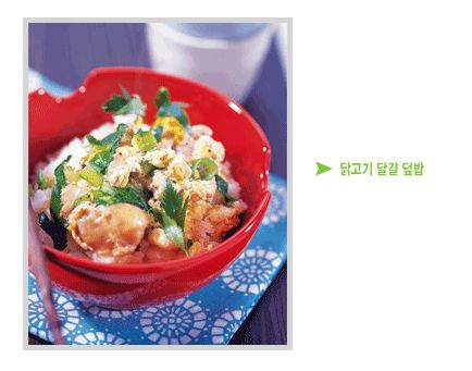 ● 이렇게 만드세요 ● ① 냄비에 준비한 양념장을 붓고 2분 정도 끓이다가 적당히 썬 닭다리 살을 넣는다. ② 닭다리 살이 익으면 달걀을 풀어 냄비에 가만히 붓고 반숙 정도로 익었을 때 준비한 대파와 참나물 잎을 넣고 뚜껑을 덮어 1~2분 정도 약한 불로 끓이다가 불을 끈다. ③ 그릇에 밥을 담고 ②를 먹음직스럽게 올린다.