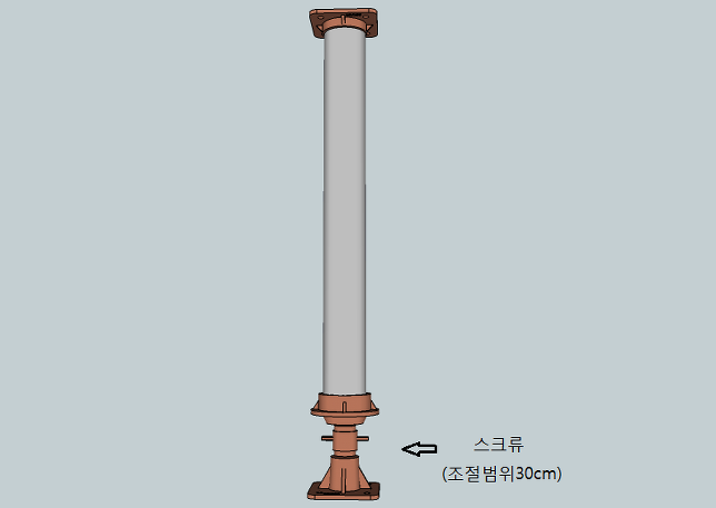 | 조절형잭서포트 | 파이프 | 조절범위 | 4"파이프가 아래위로 움 직여 높이를 자유자재로 조절할수 있다. |