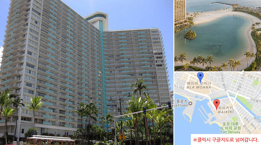 하와이 호놀룰루 와이키키 해변과 알라와이 요트 항구사이 도보로 1분 거리에 있다.