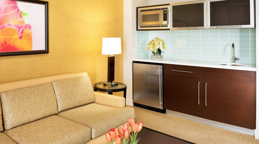 모든 객실은 HDTV, 냉장고, 에어컨, 커피메이커, iPod 도킹 스테이션 등을 갖추고 있으며