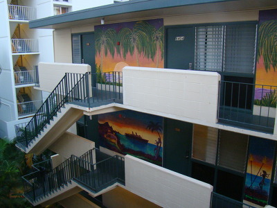 드디어 홈페이지와 책자에서 봤던 와이키키비치사이드 호스텔에 도착!!