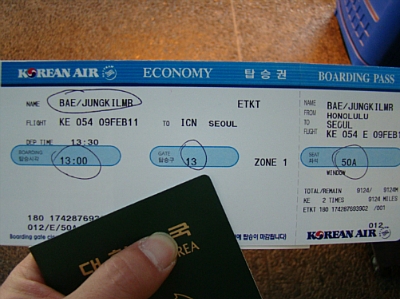 [헉..이건 호놀룰루에서 인천으로 돌아가는 티켓이네여..ㅋ]