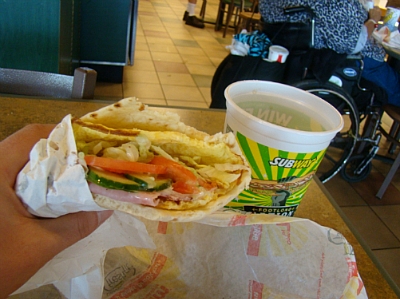 아침은 서브웨이에서 간단하게 샌드위치를^^ 오전타임은 좀 더 저렴한 가격으로 식사를 할 수 있었어요.