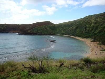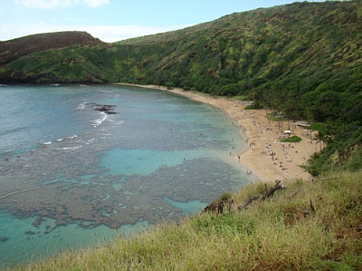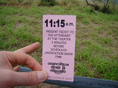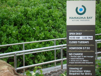 깨긋한 하나우마베이를 보존하기위한 간단한 5분가량의 비디오상영을 마치고 해변으로 내려갔습니다.